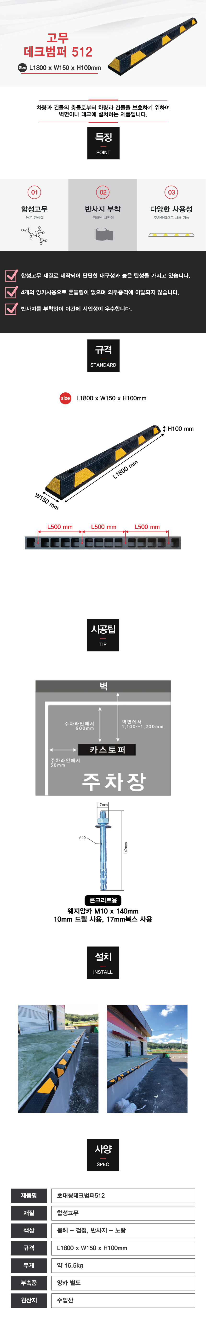 [H-2 카스토퍼(주차블럭) 데크범퍼] 초대형데크범퍼512