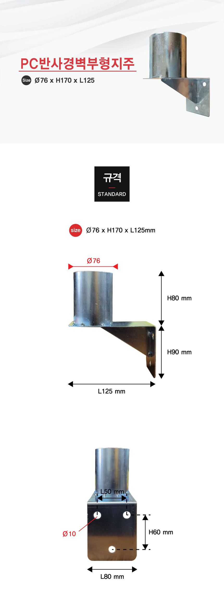 모델명 PC반사경벽부형지주
